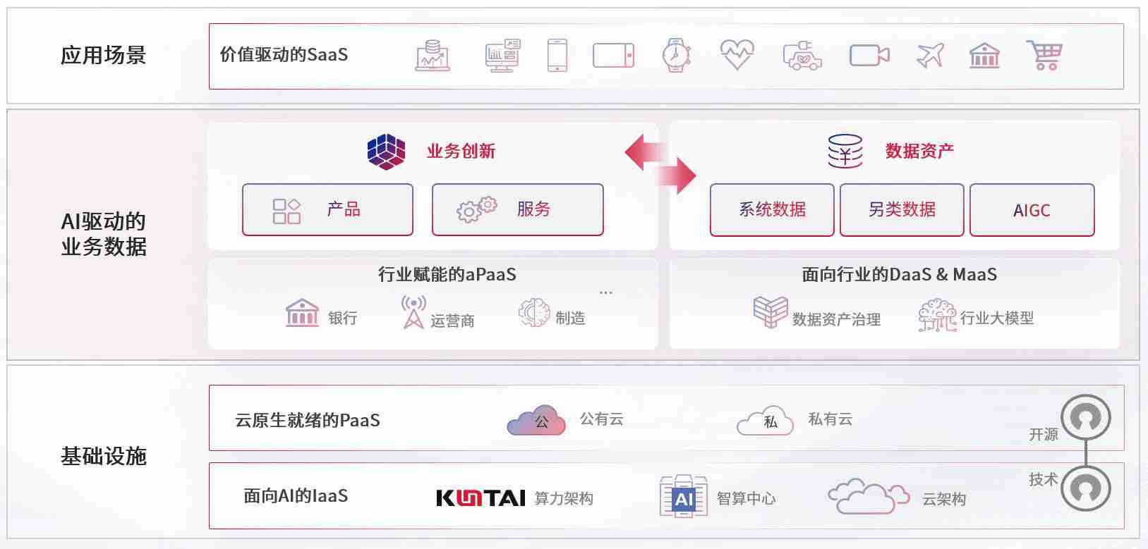 数字时代,,,围绕企业数字化转型的关键要素,,355娱乐数码开创性的提出数云融合战略和技术体系框架,,,,着力在云原生、、、数字原生、、、、AI原生和信创产业上架构产品和服务能力,,为处在不同数字化转型阶段的快消零售、、、、汽车、、金融、、、、医疗、、、、政企、、、教育、、运营商等行业客户提供泛在的敏捷IT能力和融合的数据驱动能力,,,,构建跨界融合创新的数字业务场景和新业务模式,,助力企业级客户建立面向未来的核心能力和竞争优势,,,全面推动社会的数字化、、、、智能化转型升级。。